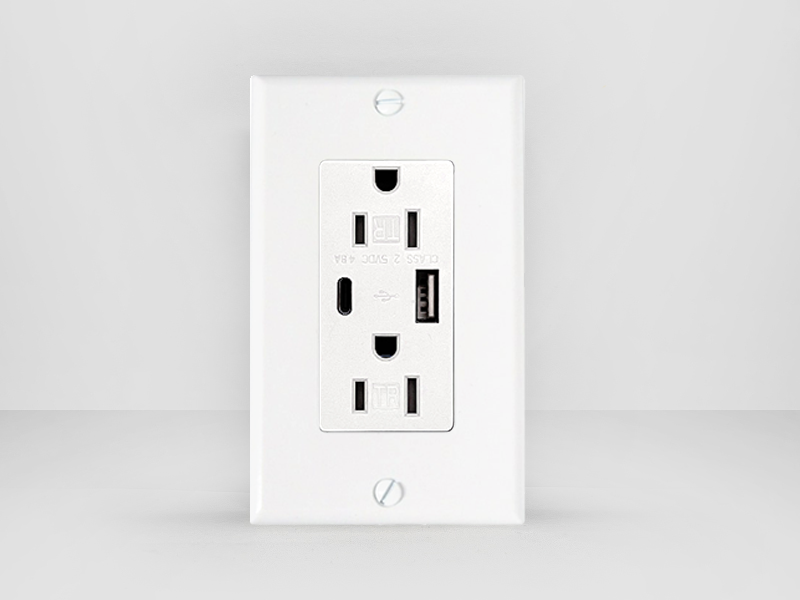 Tomacorriente con USB Tipo A&C de 4,8AMP - 5VDC, A Prueba de Manipulaciones, 15AMP, 125VAC